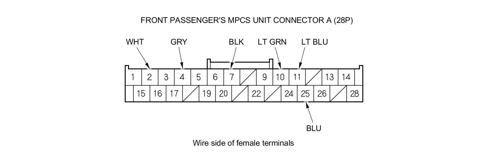 11. Disconnect front passenger's MPCS unit connector A (28P).