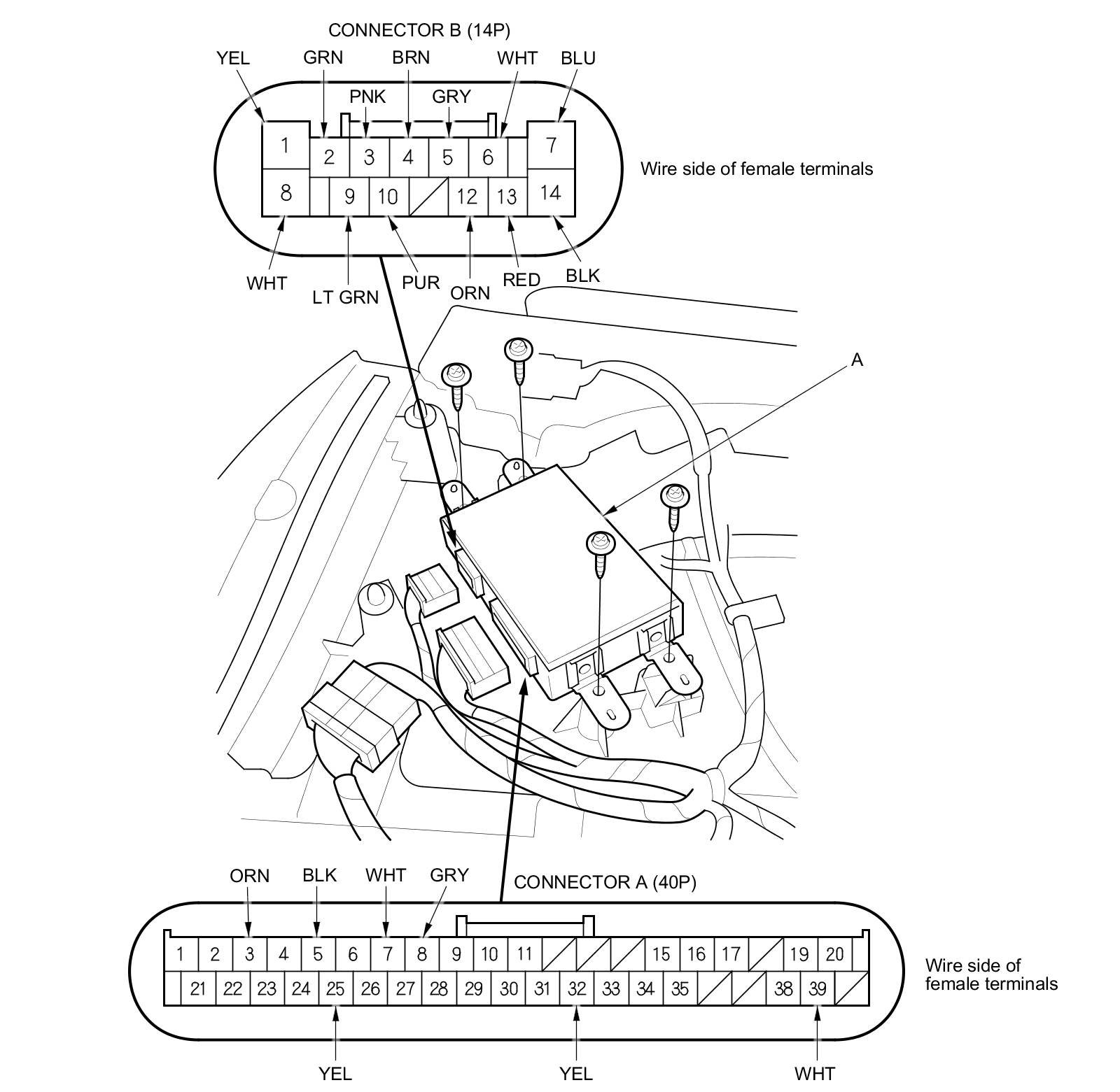 3. Disconnect driver's MPCS unit (A) connectors A (40P) and B (14P).