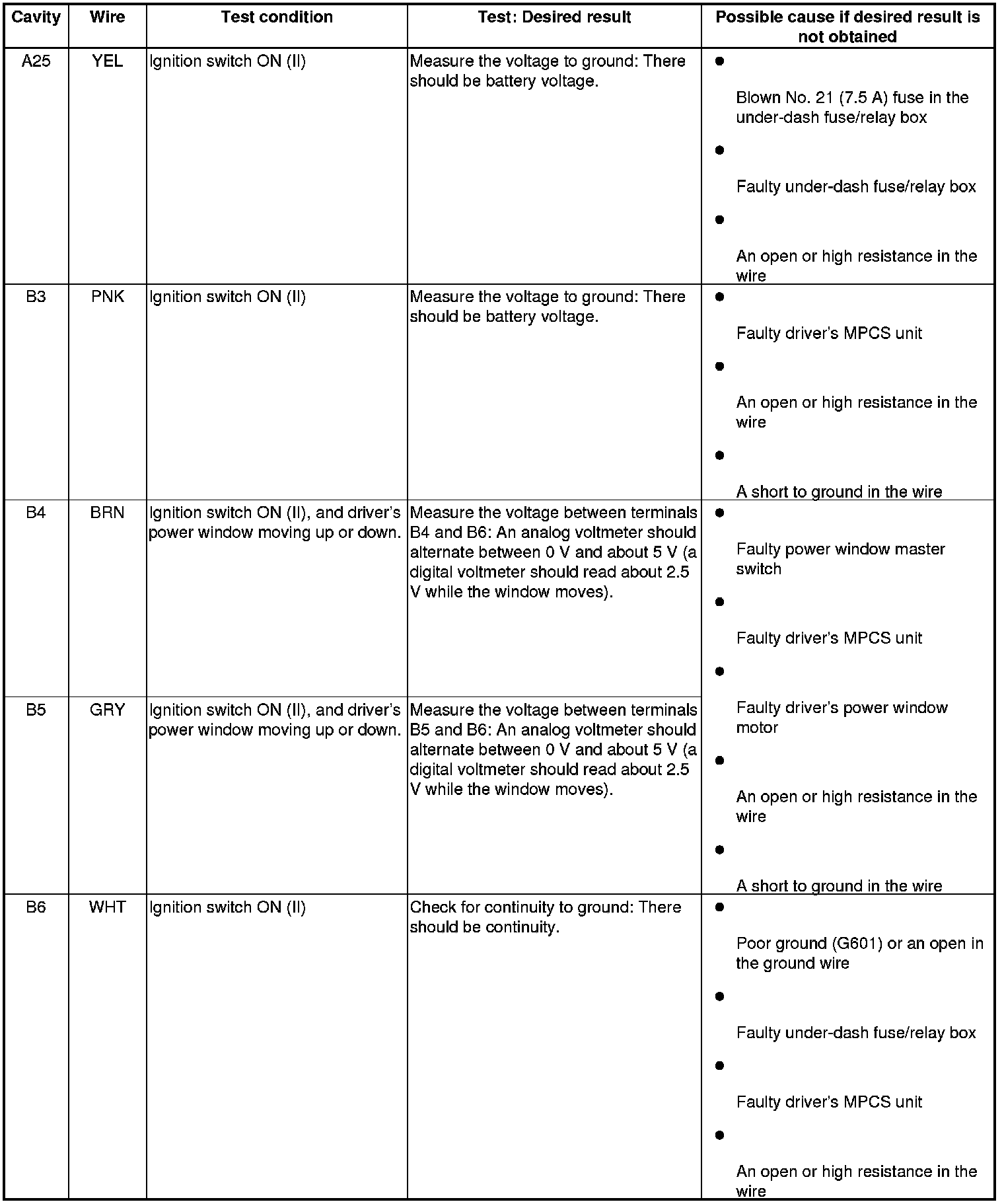 - If all the input tests prove OK, replace the driver's MPCS unit, then go to step 7.