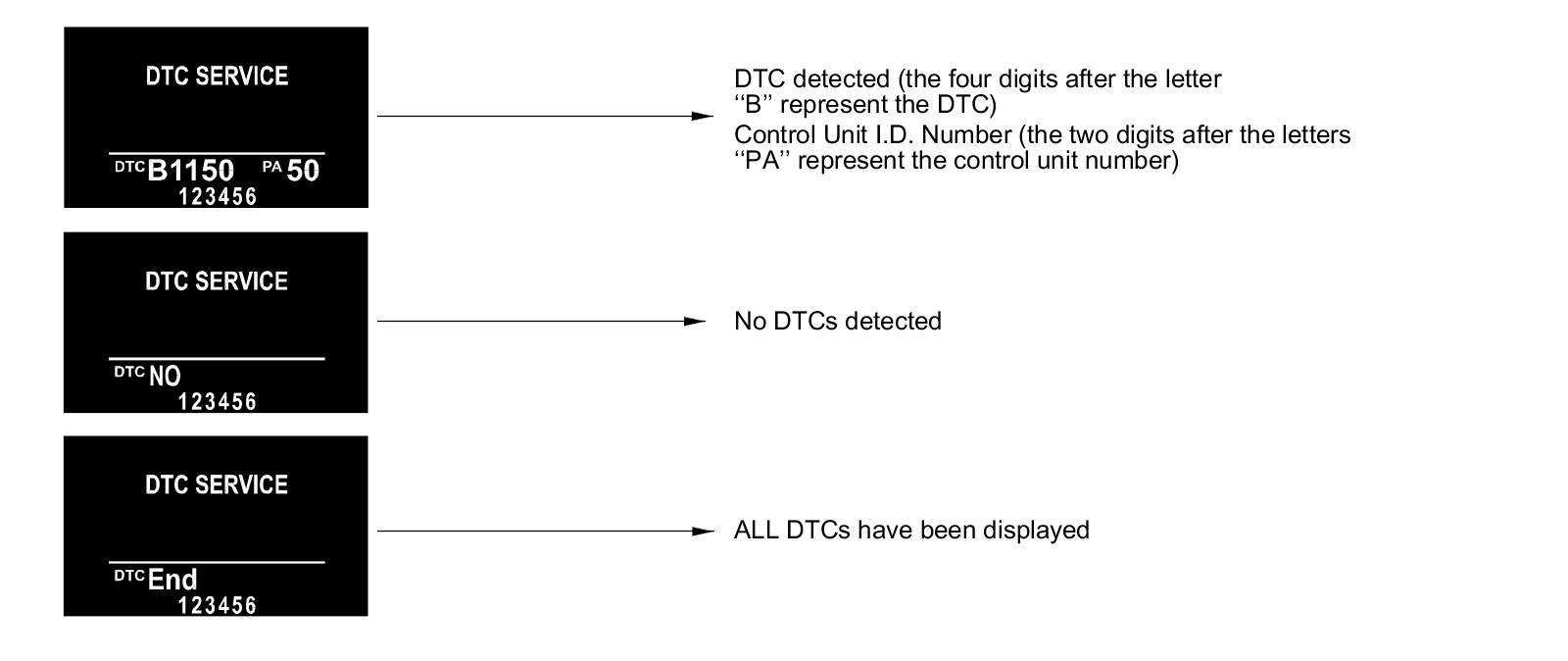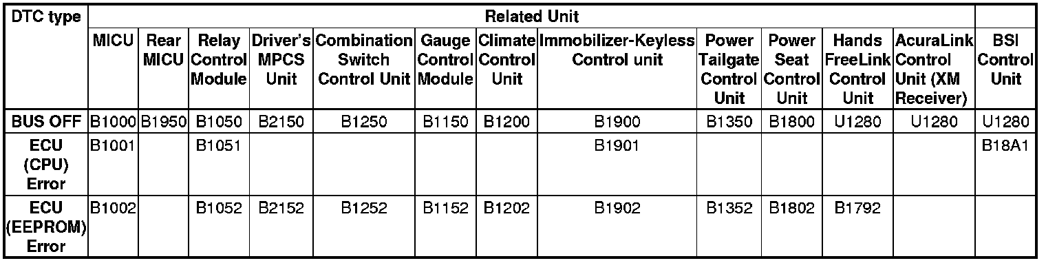 Enter B-CAN System Diagnosis Test Mode 1 Troubleshooting - B-CAN System Diagnosis Test Mode 1 and Test Mode 2. While in Test Mode 1, the DTCs which have been detected and stored individually by various B-CAN (Body-controller Area Network) units will be shown one by one on the multi-information display (MID) when communication between the MICU and the gauge control module is normal. To scroll through the DTCs, press the SEL/RESET button.