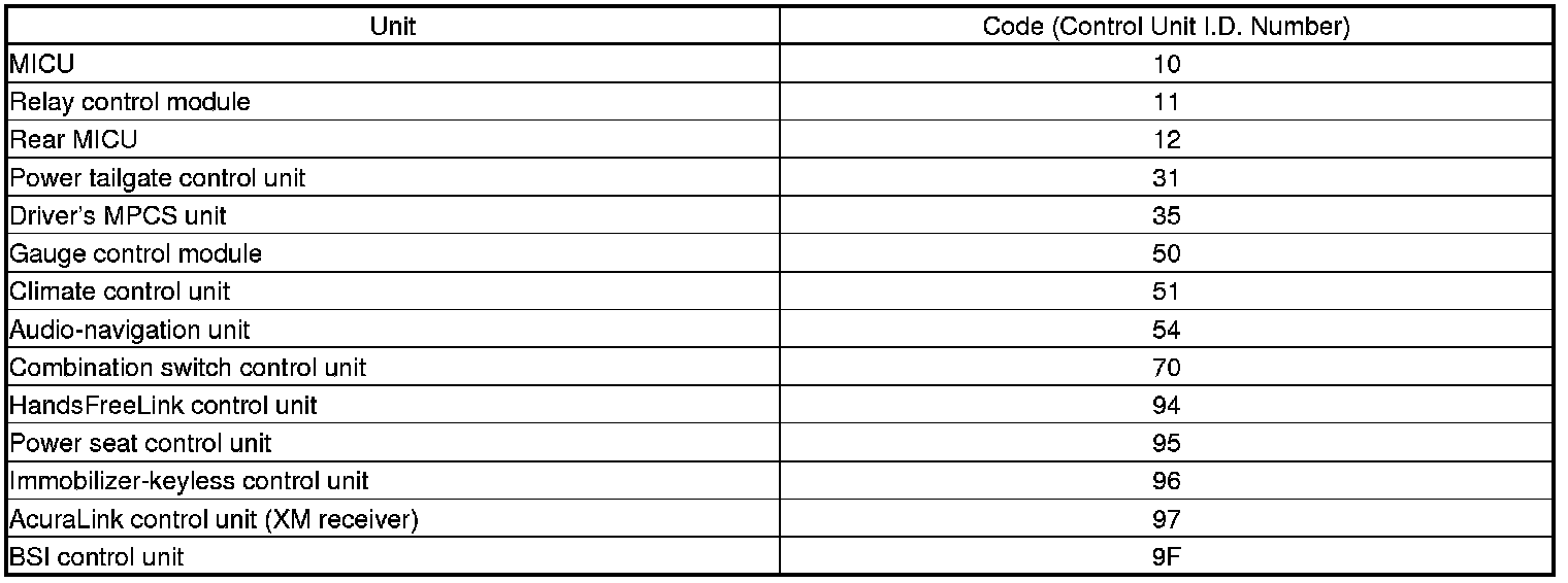 When an electronic control unit (ECU) on the CAN circuit is unable to communicate with the other ECUs on the CAN circuit, the other control units will set loss of communication DTCs. Use this chart to find the control unit that is not communicating with the other control units on the CAN circuit.