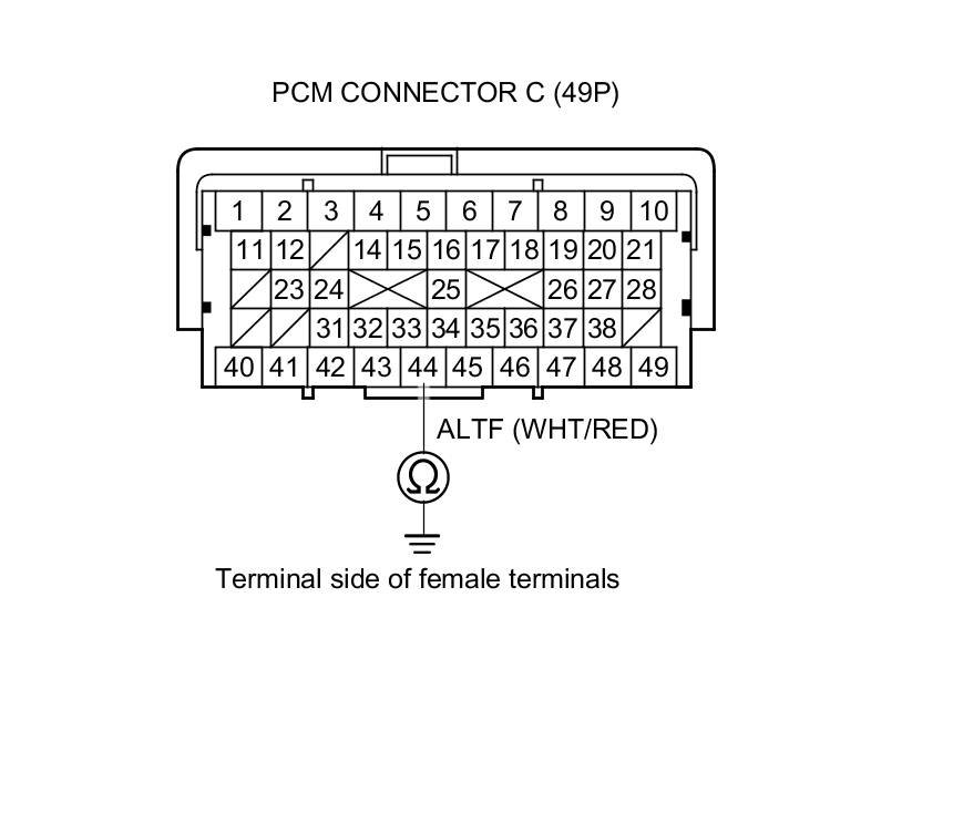 8. Check for continuity between body ground and PCM connector terminal C44.