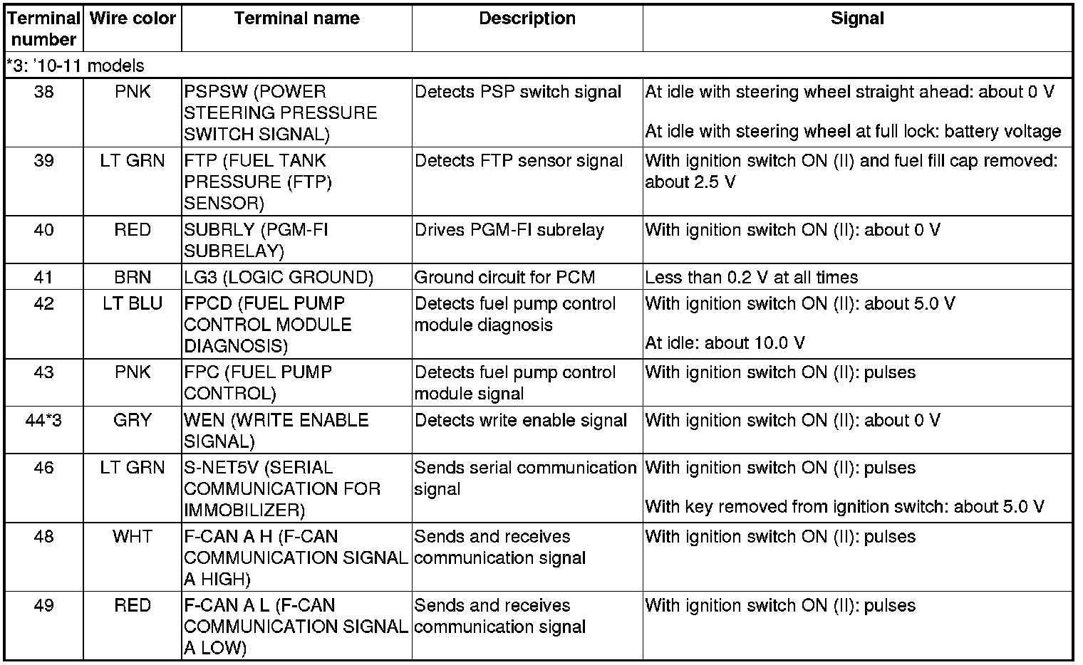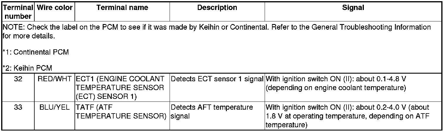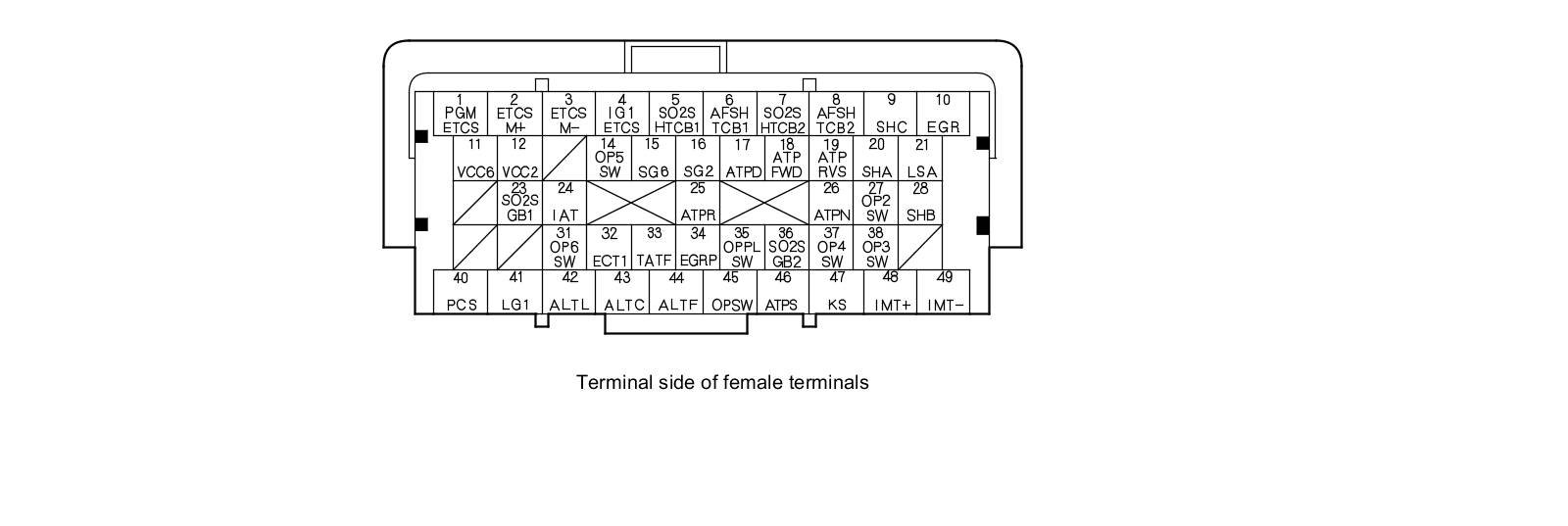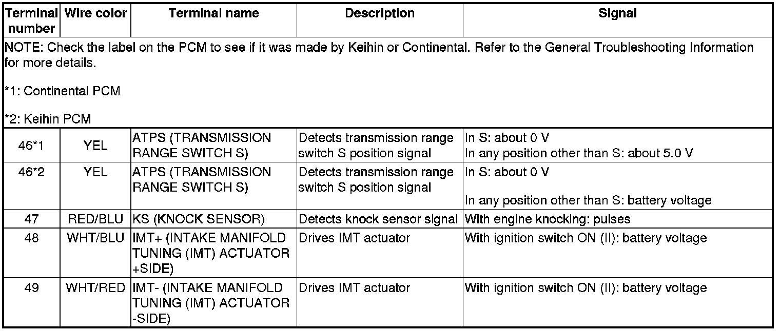 PCM Inputs and Outputs at PCM Connector A (square) (49P)