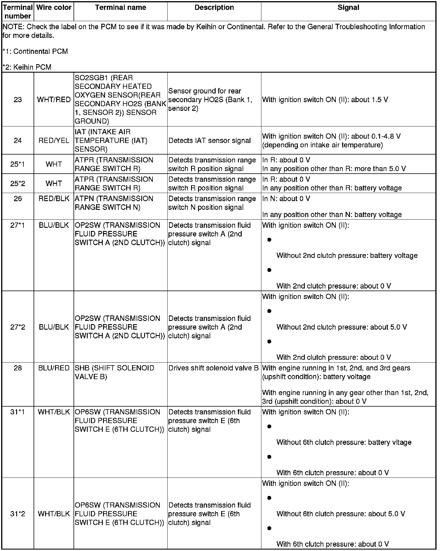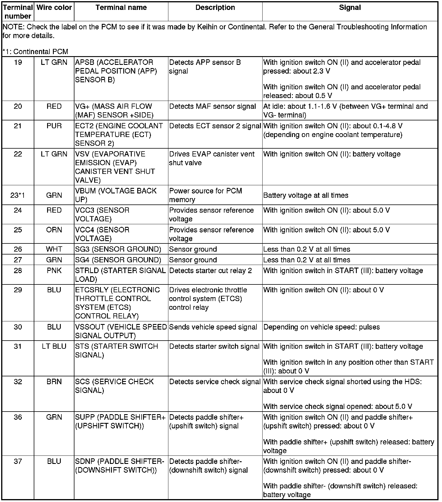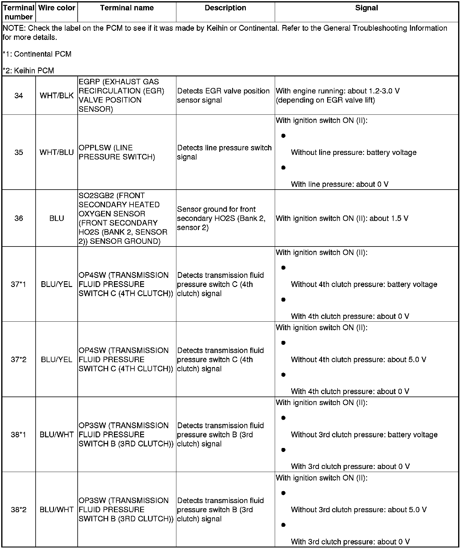 PCM Inputs and Outputs at PCM Connector B (triangle) (49P)