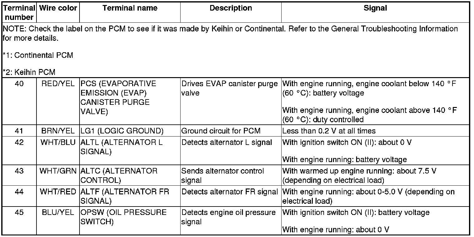 PCM Inputs and Outputs at PCM Connector C (circle) (49P)