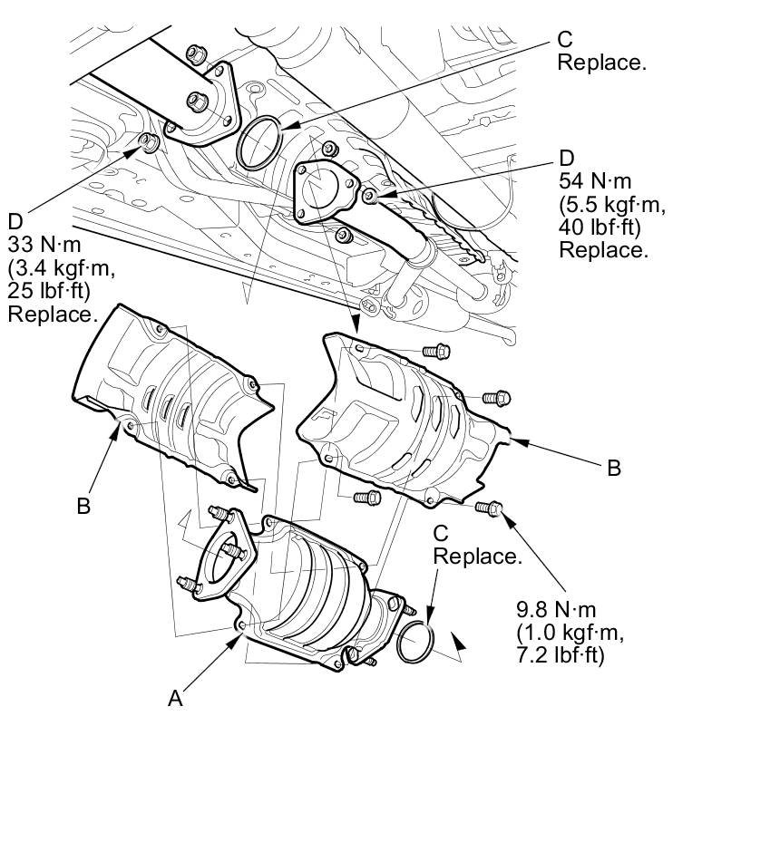 Install the parts in the reverse order of removal with new gaskets (C) and new self-locking nuts (D).