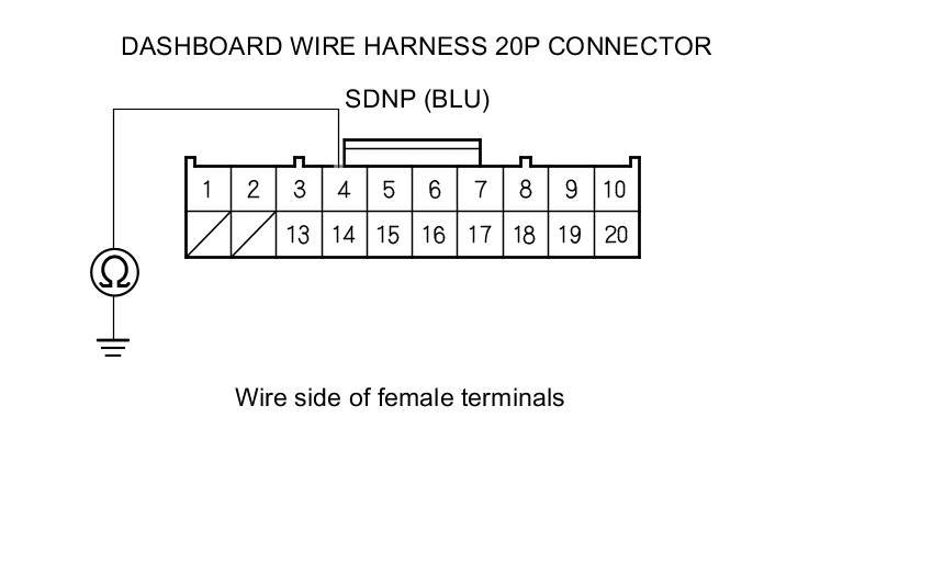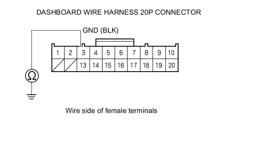 7. Check for continuity between dashboard wire harness 20P connector terminal No. 4 and body ground.