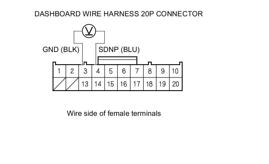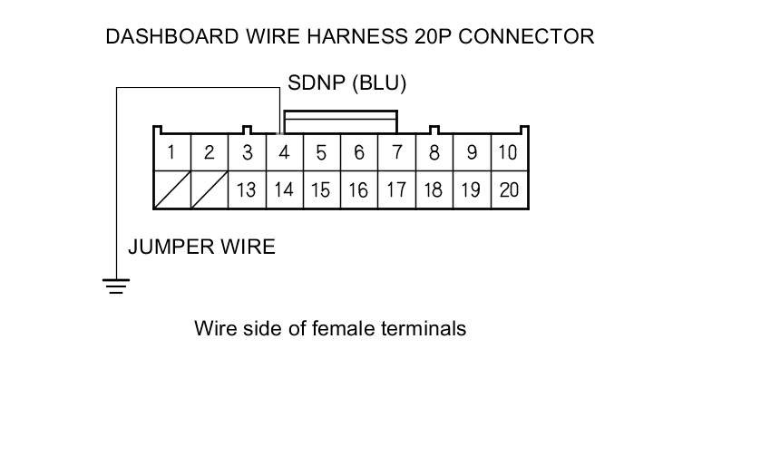 13. Connect dashboard wire harness 20P connector terminal No. 4 to body ground with a jumper wire.