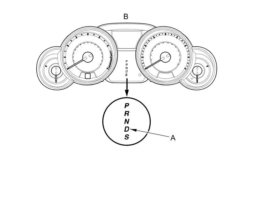 When the powertrain control module (PCM) senses an abnormality in the input or output system, the D indicator (A) in the gauge control module (B) will usually blink.