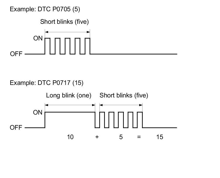 When an abnormality occurs in the signal from a sensor, a switch, a solenoid valve, or from another control unit, the PCM stores a Pending or Confirmed DTC for the failure and blinks the D indicator and/or turns on the MIL immediately.