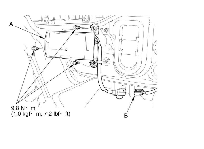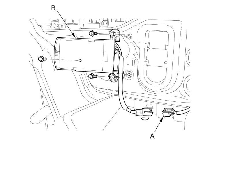 2. Disconnect the 6P connector (A) from the BSI radar unit (B).