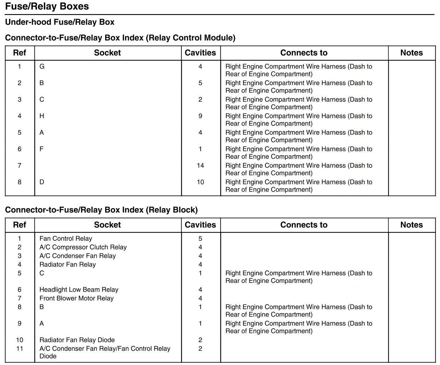 Under-Hood Fuse/Relay Box - Connector-to-Fuse/Relay Box Index (Relay Control Module/Relay Block)