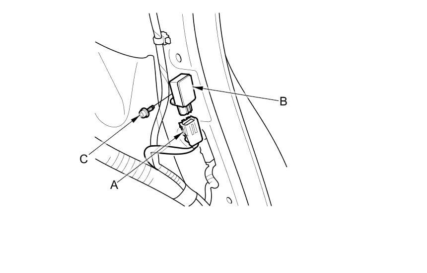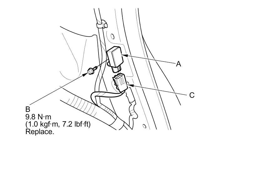 4. Remove the TORX bolt (C) using a TORX T30 bit, then remove the side impact sensor (second).