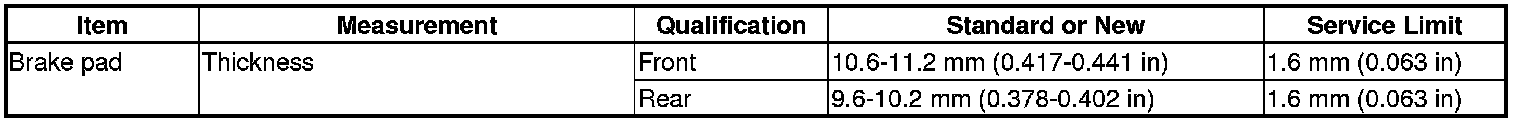 Brake Pad Specification(s)