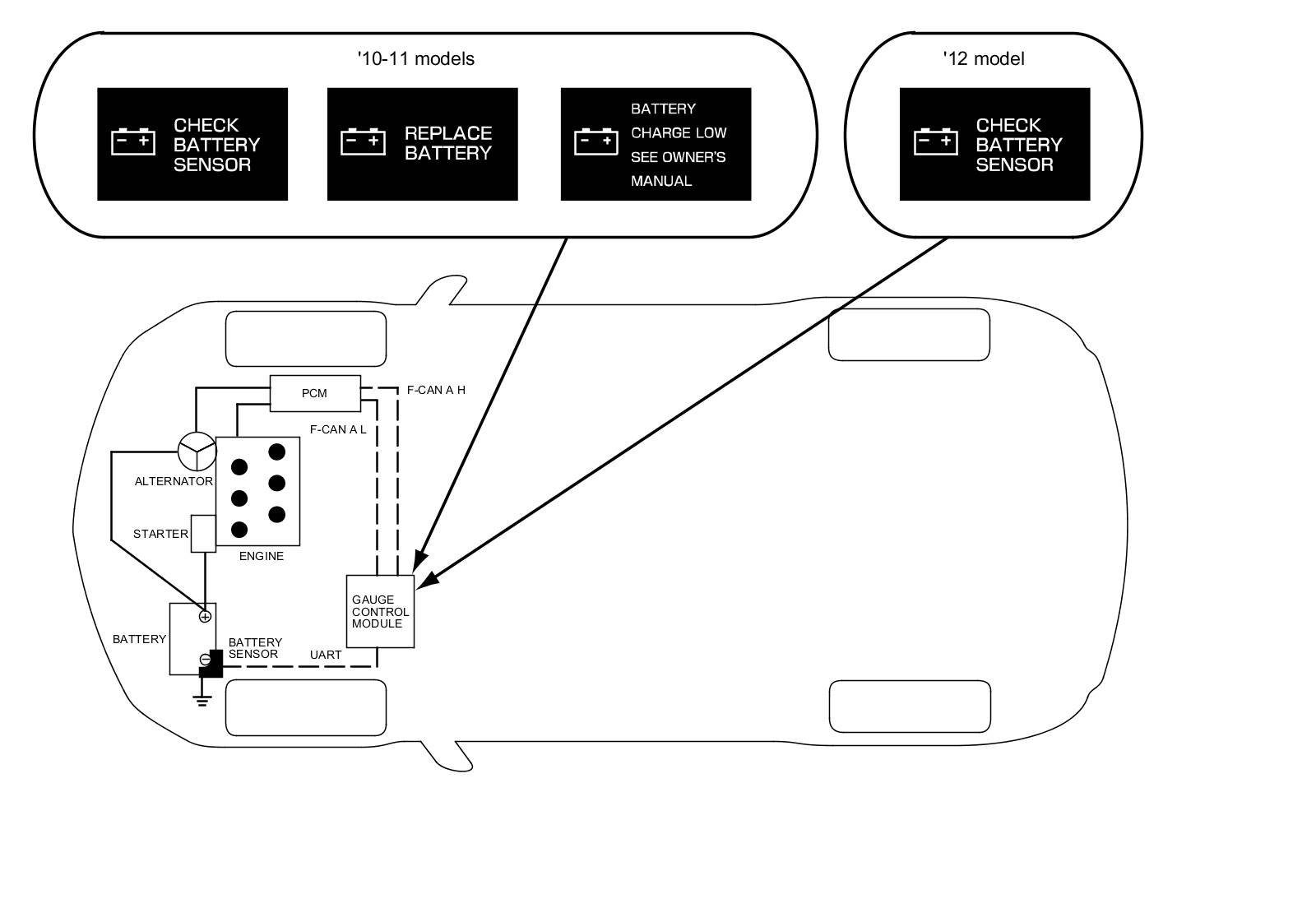 If the battery sensor detects any problems, a warning message is shown on the multi-information display (MID) to inform the client that the system needs attention.