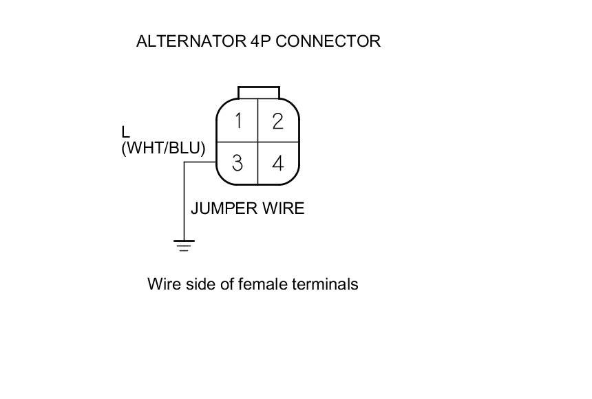 17. Connect alternator 4P connector terminal No. 3 and body ground with a jumper wire.