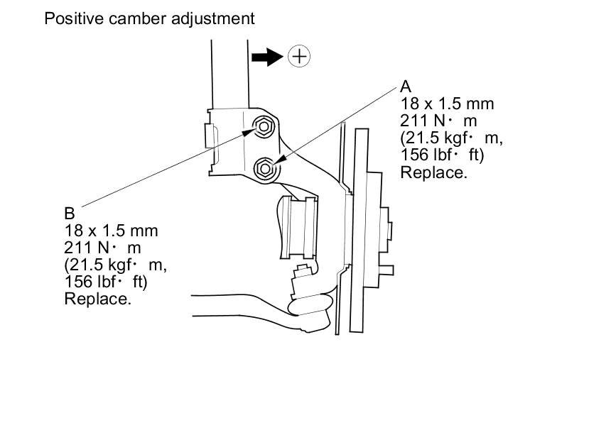 10. Replace the damper pinch bolt (A) with the adjusting bolt (B), and adjust the camber angle.