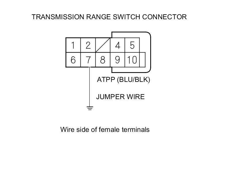 25. Connect a jumper wire between transmission range switch connector terminal No. 7 and body ground.