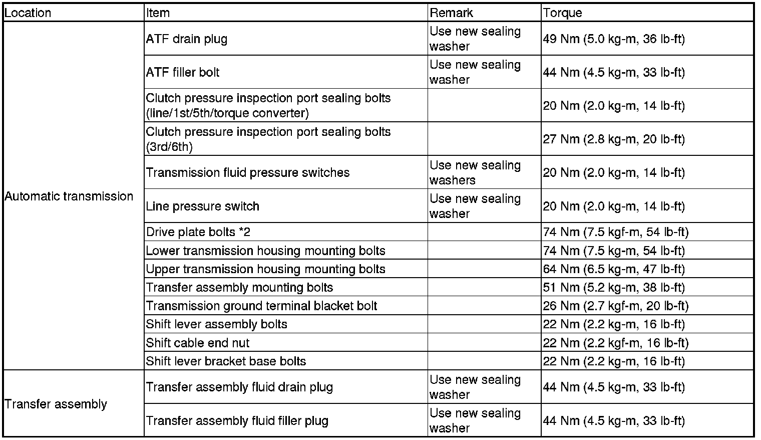*2: Follow the procedures closely for torque, sequence, and special steps.