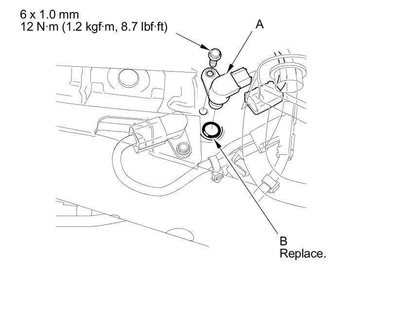 4. Apply ATF to a new O-ring (B), and install the O-ring over the output shaft (countershaft) speed sensor. Then install the output shaft (countershaft) speed sensor.