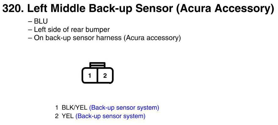 View 320 - Left Middle Back-Up Sensor Connector View (Acura Accessory)