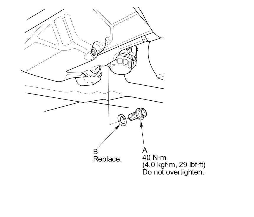 3. Reinstall the drain bolt with a new washer (B).