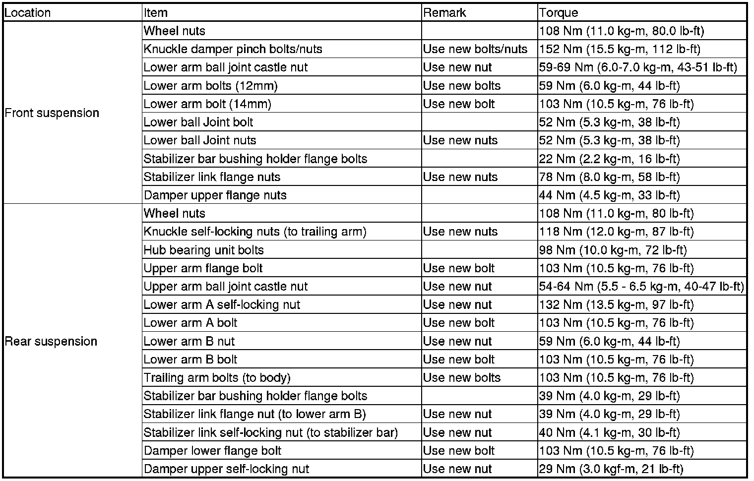 Torque Specifications