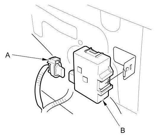 2. Disconnect the 2P connector (A) from the keyless buzzer (B).