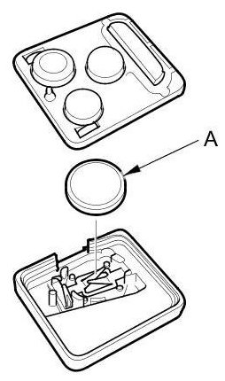 6. Replace the transmitter battery (A) with a new one, and press the lock or unlock button and check the response on the screen of the HDS.