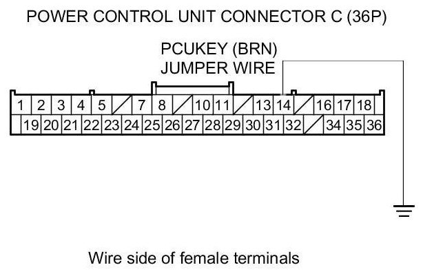 6. Connect power control unit connector C (36P) terminal No. 14 to body ground with a jumper wire.