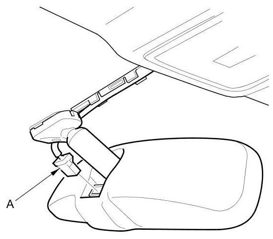 2. Disconnect the rearview mirror connector (A).