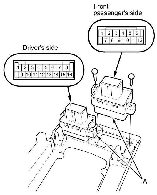 2. Disconnect the 16P [12P] connector from the seat ventilation switch (A).