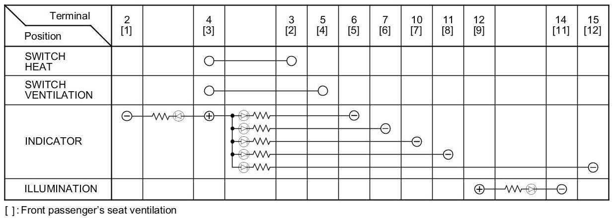 5. If the continuity check is not as specified, replace the seat ventilation switch.