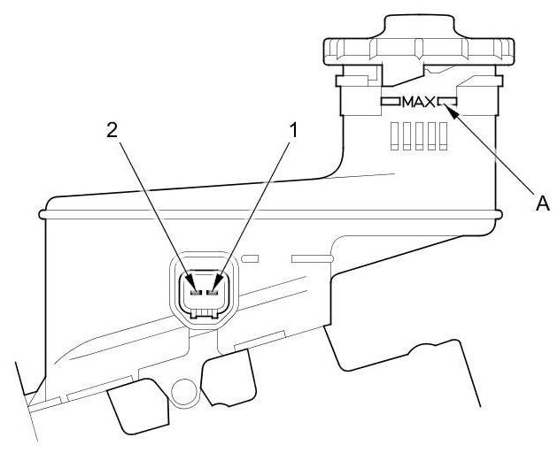- Fill the reservoir with brake fluid to the MAX (upper) level (A). With the float up, there should be no continuity.