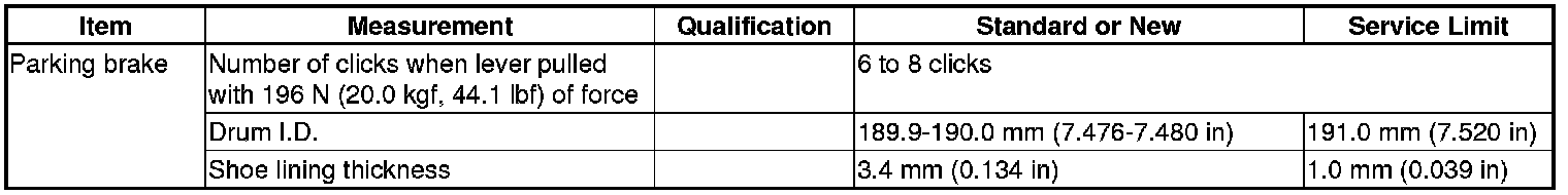 Parking Brake System: Specifications