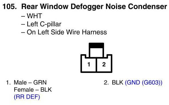 View 105 - Rear Window Defogger Noise Condenser Connector View
