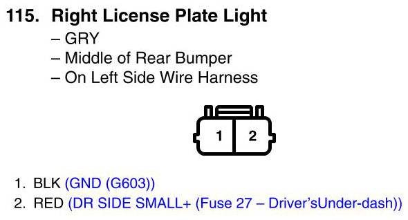 View 115 - Right License Plate Light Connector View