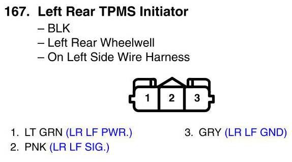 View 167 - Left Rear TPMS Initiator Connector View