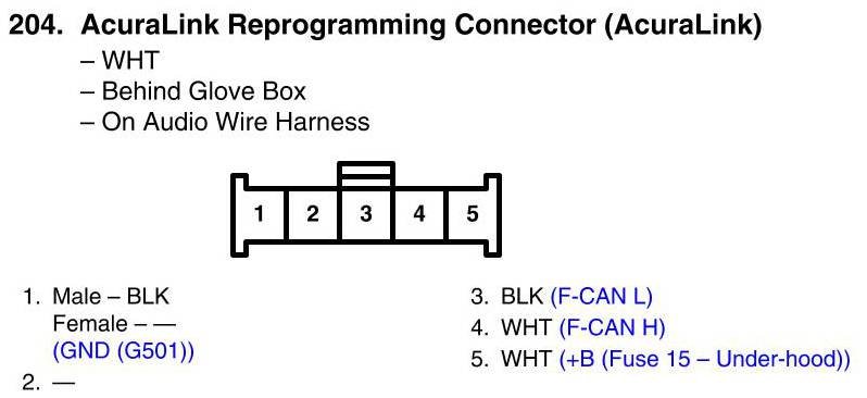 View 204 - AcuraLink Reprogramming Connector (AcuraLink) Connector View