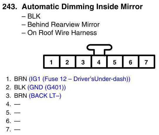 View 243 - Automatic Dimming Inside Mirror Connector View