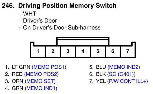 View 246 - Driving Position Memory Switch Connector View