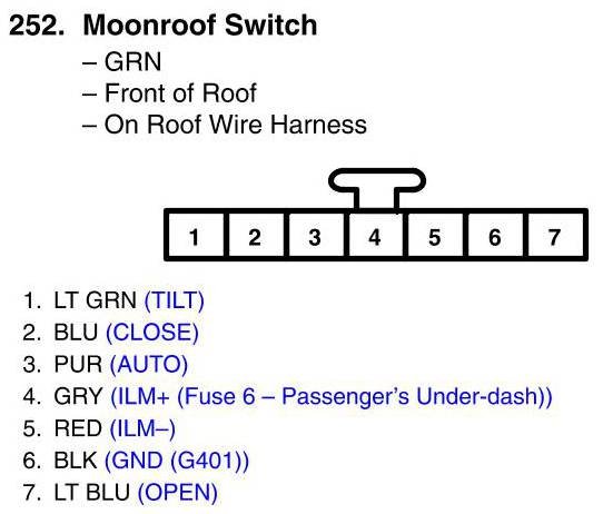 View 252 - Moonroof Switch Connector View