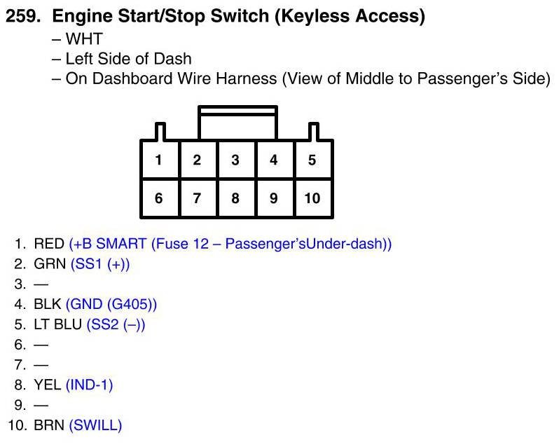View 259 - Engine Start/Stop Switch (Keyless Access) Connector View