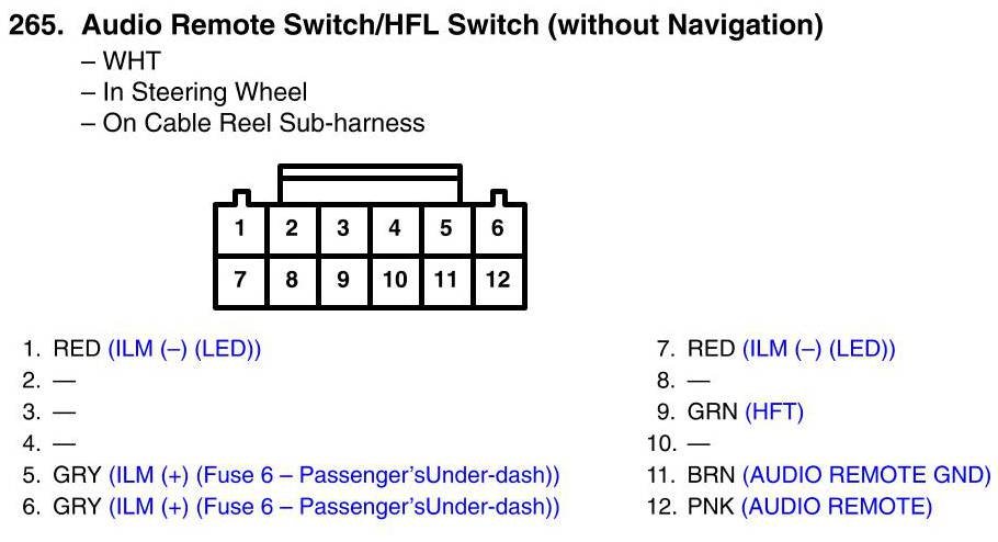 View 265 - Audio Remote Switch/HFL Switch (Without Navigation) Connector View