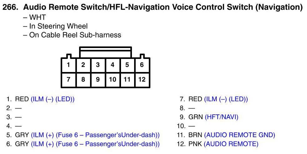 View 266 - Audio Remote Switch/HFL-Navigation Voice Control Switch (Navigation) Connector View