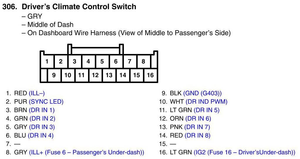 View 306 - Driver's Climate Control Switch Connector View