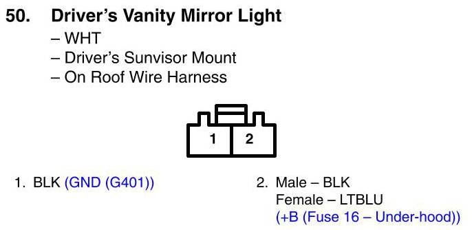 View 50 - Driver's Vanity Mirror Light Connector View