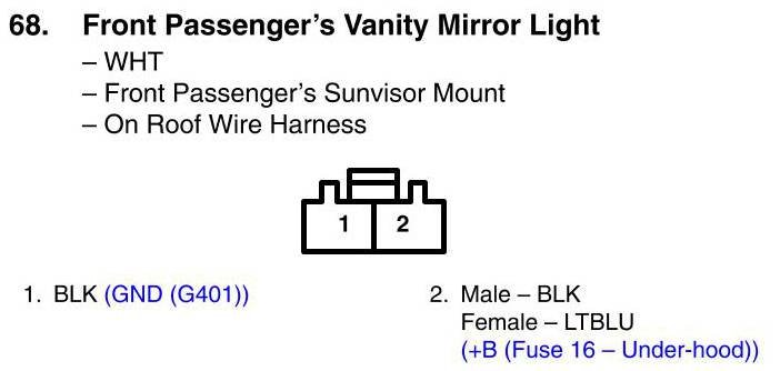 View 68 - Front Passenger's Vanity Mirror Light Connector View