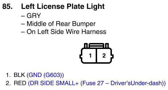 View 85 - Left License Plate Light Connector View