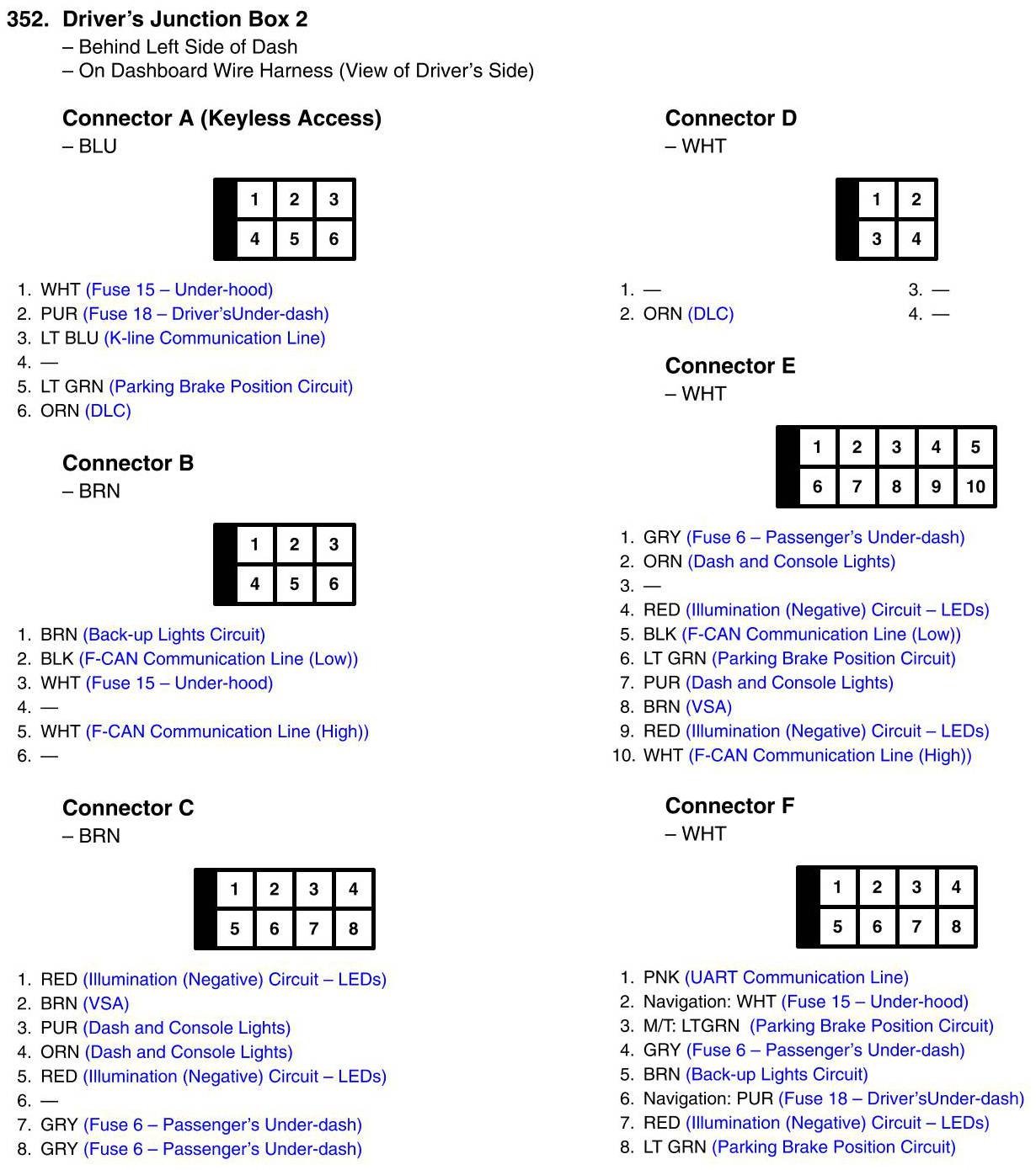 Driver's Junction Box 2 Connector View